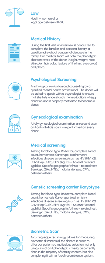 The eggs come from women with no relation to the recipient, who decide to donate voluntarily and altruistically. As explained, all candidates are carefully evaluated according to the criteria set by both CNPMA and IVI: they must be between 18 and 34 years old, be in good health, and have no personal or family history of genetic or hereditary diseases.